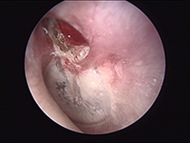 Kuppelraum- (= epitympanales) Cholesteatom mit Signalpolyp (linkes Ohr)